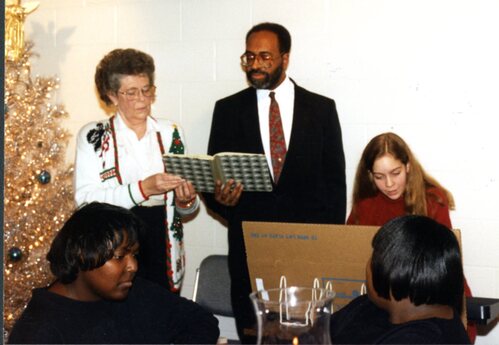 Sharing his wonderful voice at the Library's staff Christmas party in 1994.