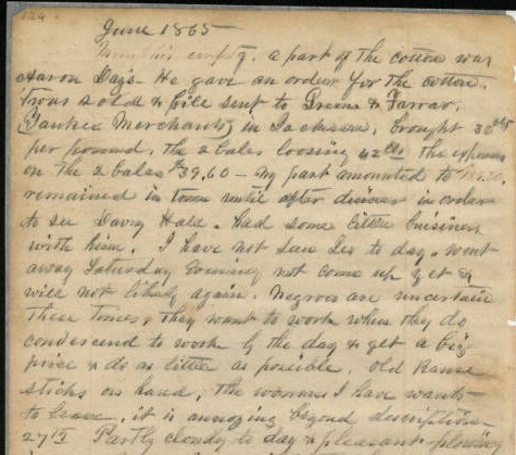 Excerpt from the Diary of Robert H. Cartmell, June 1865.