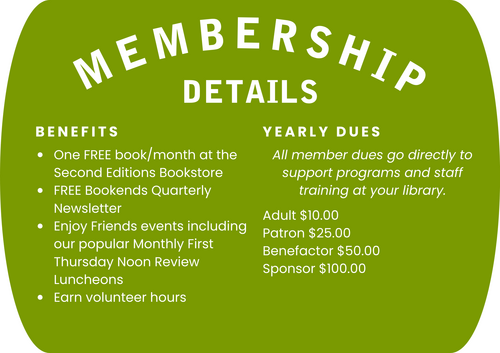 Visit the Second Editions Bookstore at the Main Library and North Branch to shop a great selection of gently used books, movies, and more!